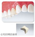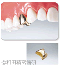 しなやか(やわらかい)金属なので、噛みあう相手の歯を傷めません。また、密着性が高いので、歯と金属の間がむし歯になりにくいです。 目立たない奥歯に最適です。 |